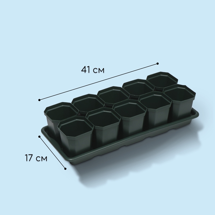 Набор для рассады: стаканы по 300 мл (10 шт.), поддон 41 × 17 см, цвет МИКС