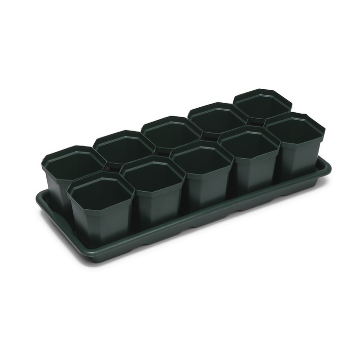 Набор для рассады: стаканы по 1 л (10 шт.), поддон 61 × 23 см, чёрный