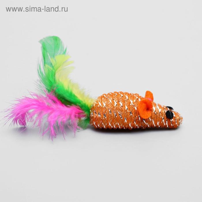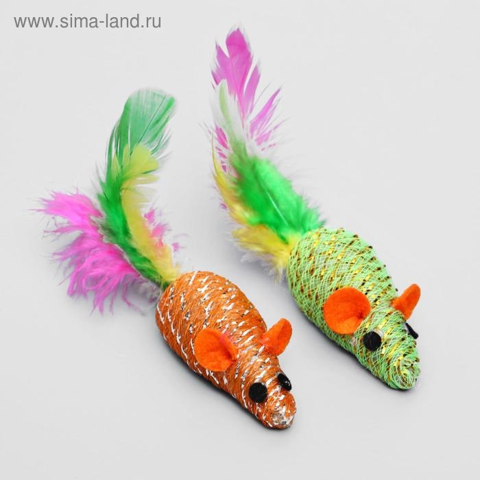 Мышь "Праздничная с перьями", 7 см, микс цветов