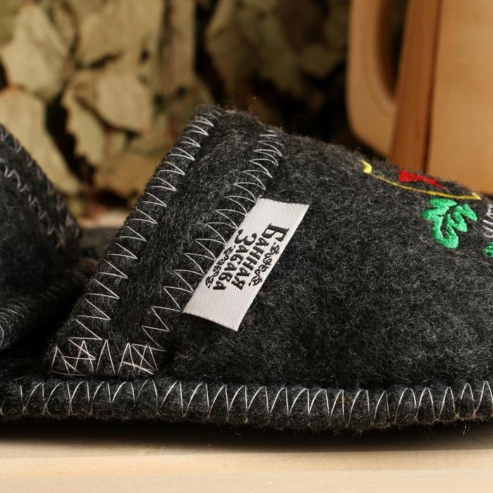 Тапочки банные войлок с вышивкой "С легким паром", ушат