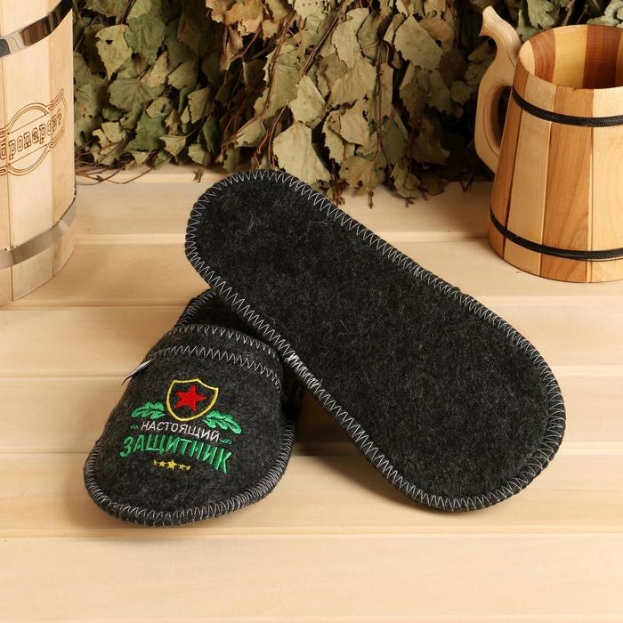Тапочки банные с вышивкой "Настоящий защитник"