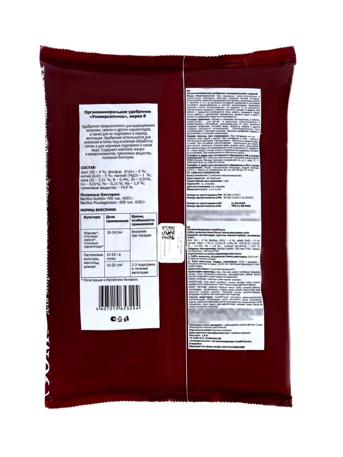 Назначение: применяется в качестве основного удобрения для моркови, свёклы, редиса, репы, редьки, брюквы, дайкона, а также для их подкормки в период вегетации.
