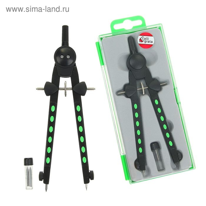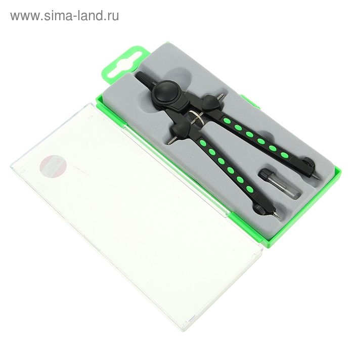 Циркуль металлический в пластиковом пенале, с запасными грифелями