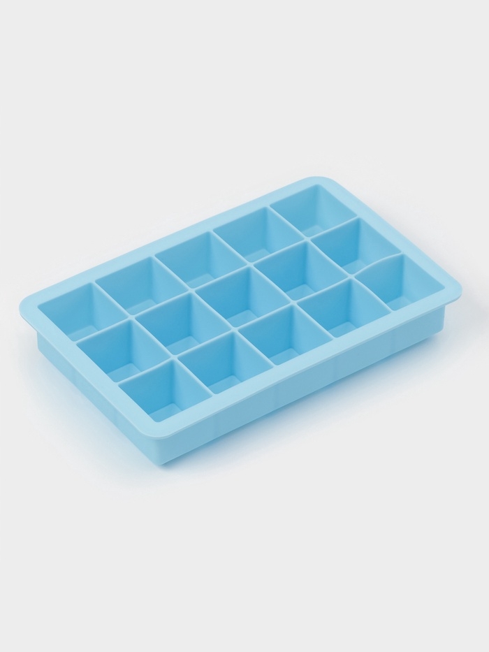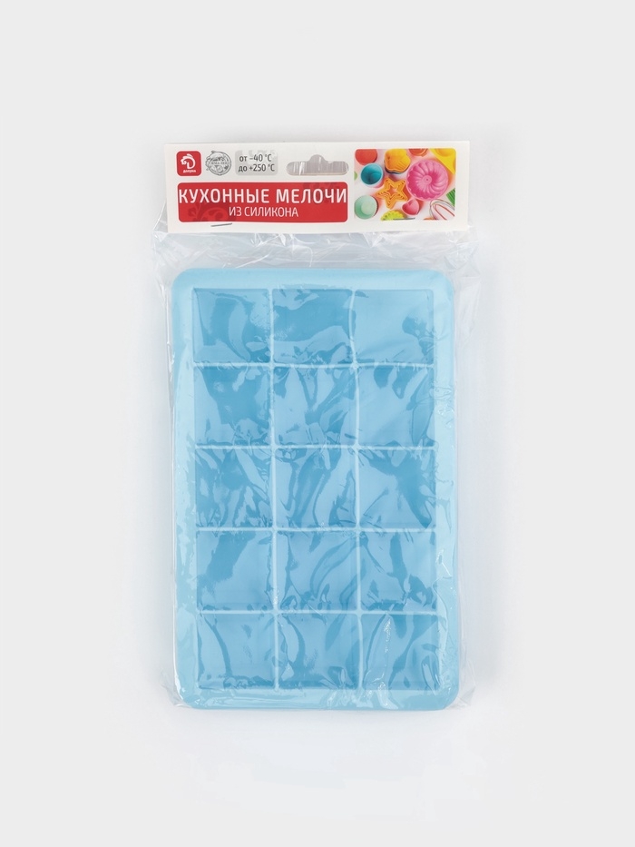 Форма для льда Доляна «Кубик», силикон, 11,7×18,7×3,4 см, 15 ячеек (3,4×3,4 см), цвет голубой