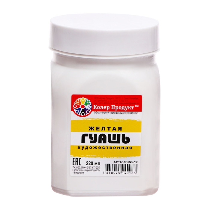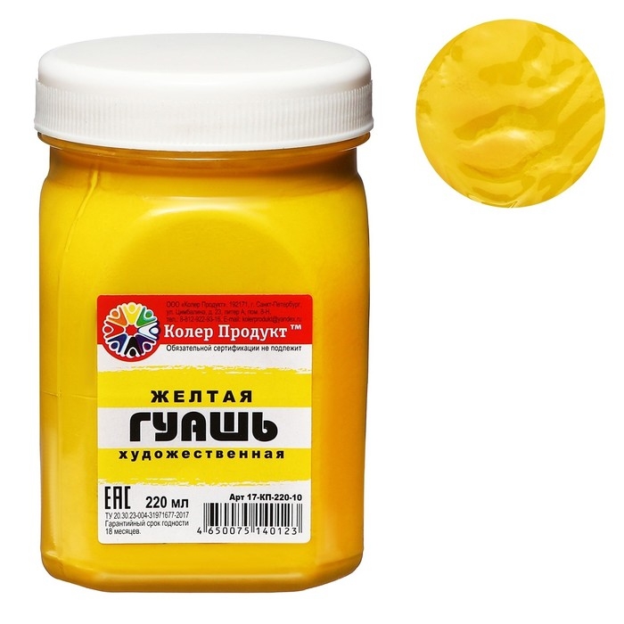 Гуашь художественная "Колер Продукт", 220 мл, в банке, жёлтый