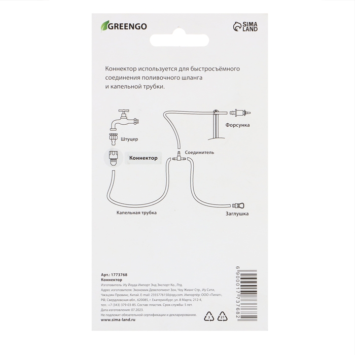 Коннектор для капельной трубки, 6 мм, быстросъёмное соединение, пластик, Greengo