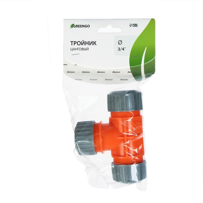 Тройник Т-образный, для шланга 3/4" (19 мм), цанговое соединение, рр-пластик, Greengo