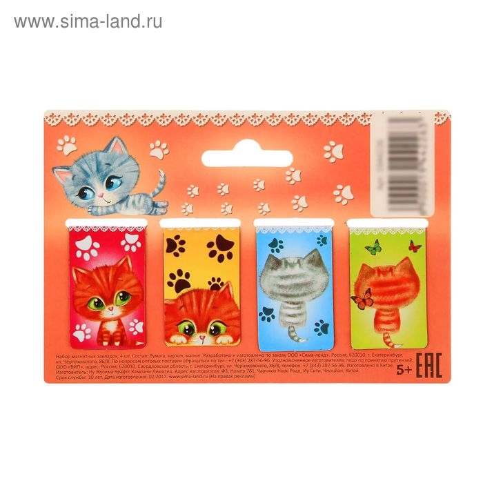 Закладки магнитные для книг, 4 шт «Котики, которые живут в книжках»