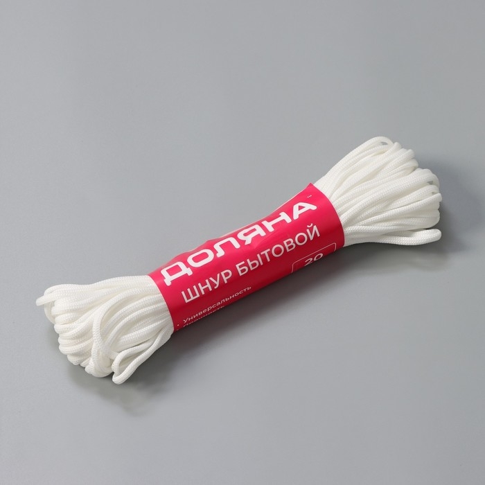 Шнур бытовой Доляна, полиэфир, d=4 мм, 20 м, белый