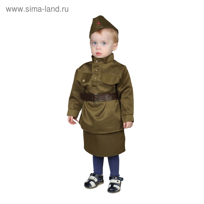 Карнавальный костюм «Солдаточка-малютка», пилотка, гимнастёрка, ремень, юбка, 1-2 года, рост 82-92 см