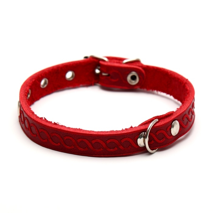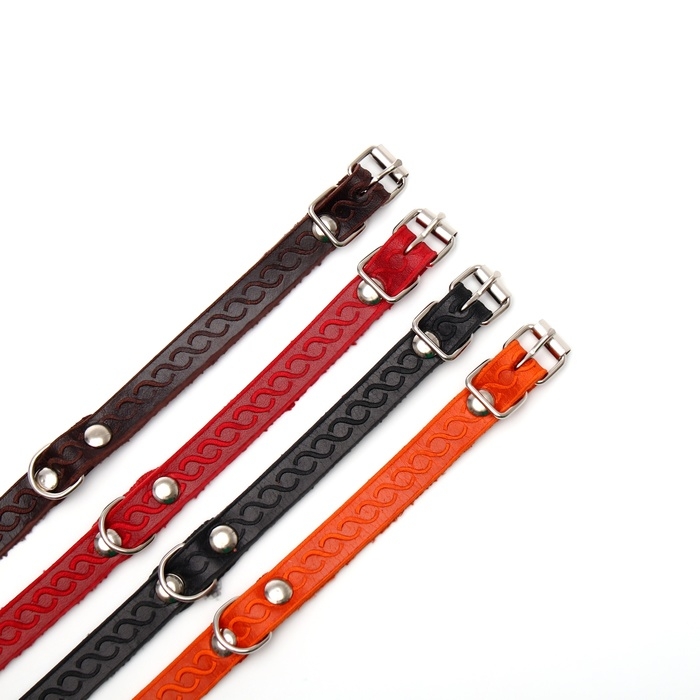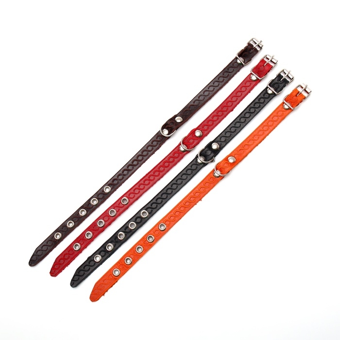 Ошейник кожаный тисненый однослойный, 29 х 1,2 см, безразмерный, микс цветов