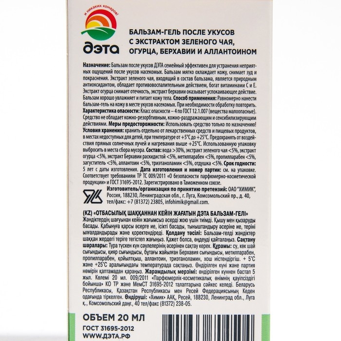 Бальзам-гель после укусов насекомых "ДЭТА", флакон, 20 мл