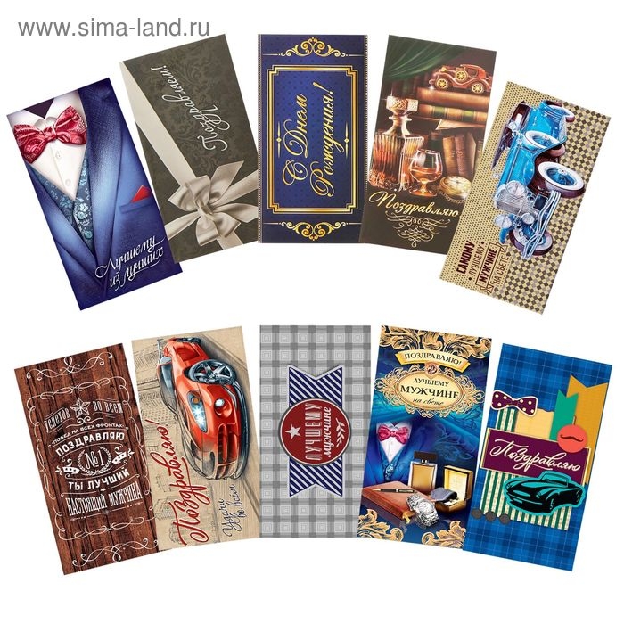 Набор конвертов для денег «Поздравляю» для лучшего мужчины, 10 шт.