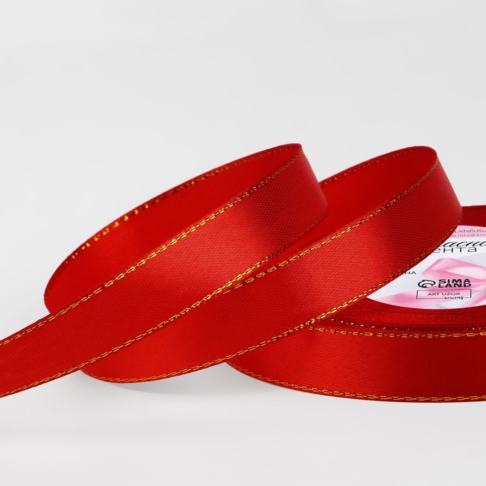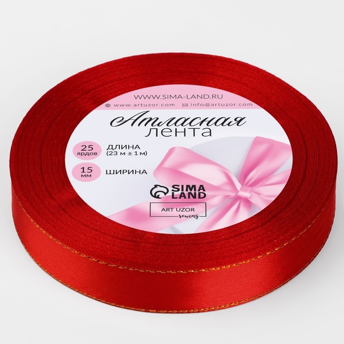 Лента атласная «Золотые нити», 15 мм × 23 ± 1 м, цвет красный №026