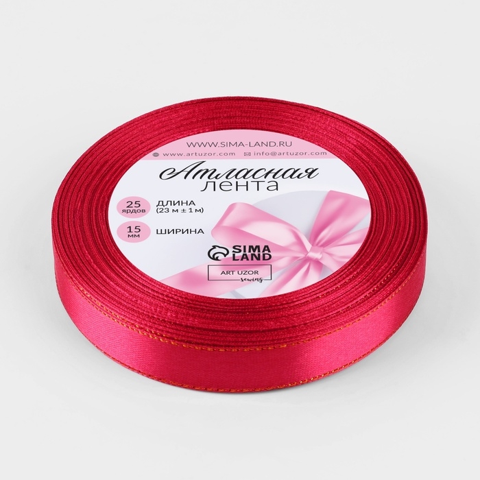 Лента атласная «Золотые нити», 15 мм × 23 ± 1 м, цвет малиновый №72