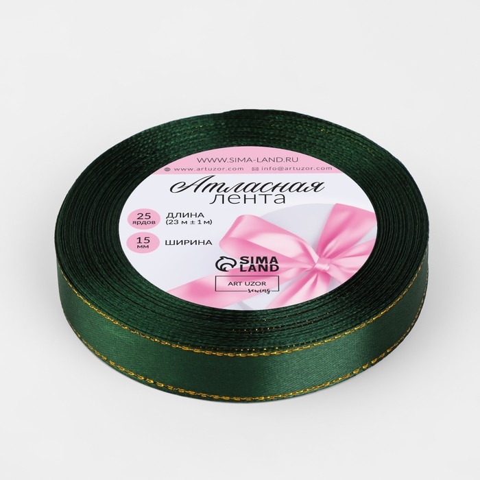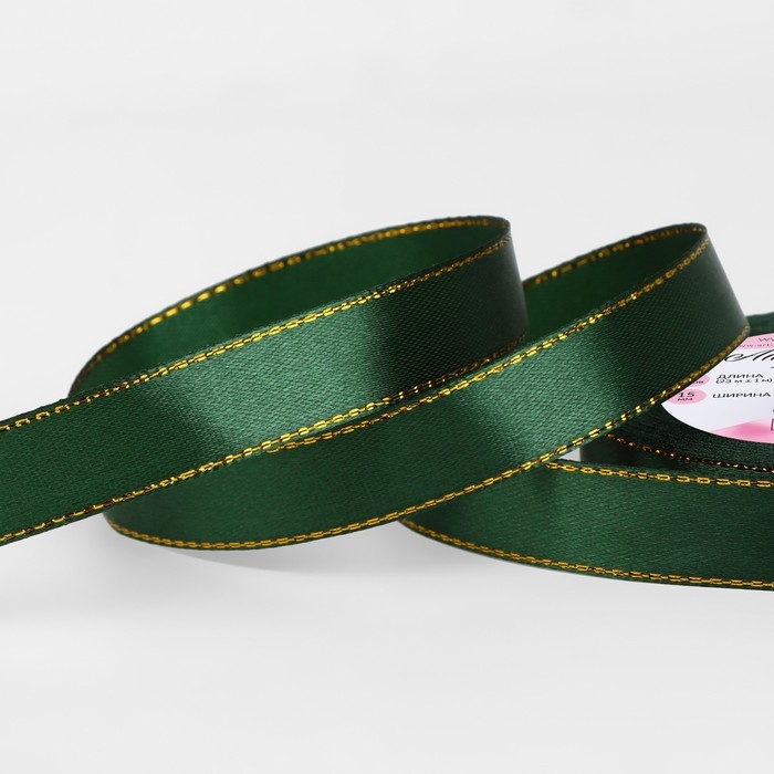 Лента атласная «Золотые нити», 15 мм × 23 ± 1 м, цвет зелёный №049
