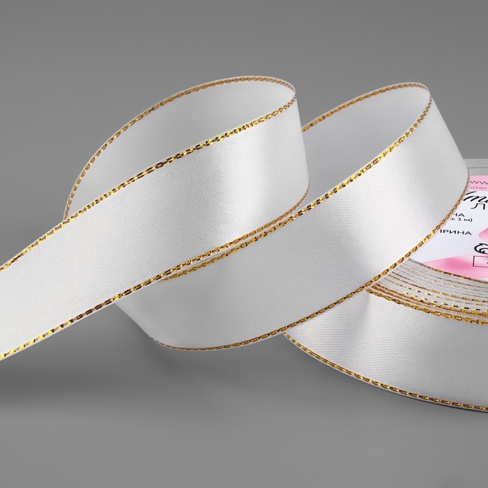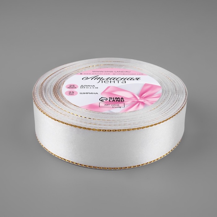 Лента атласная «Золотые нити», 25 мм × 23 ± 1 м, цвет белый №001