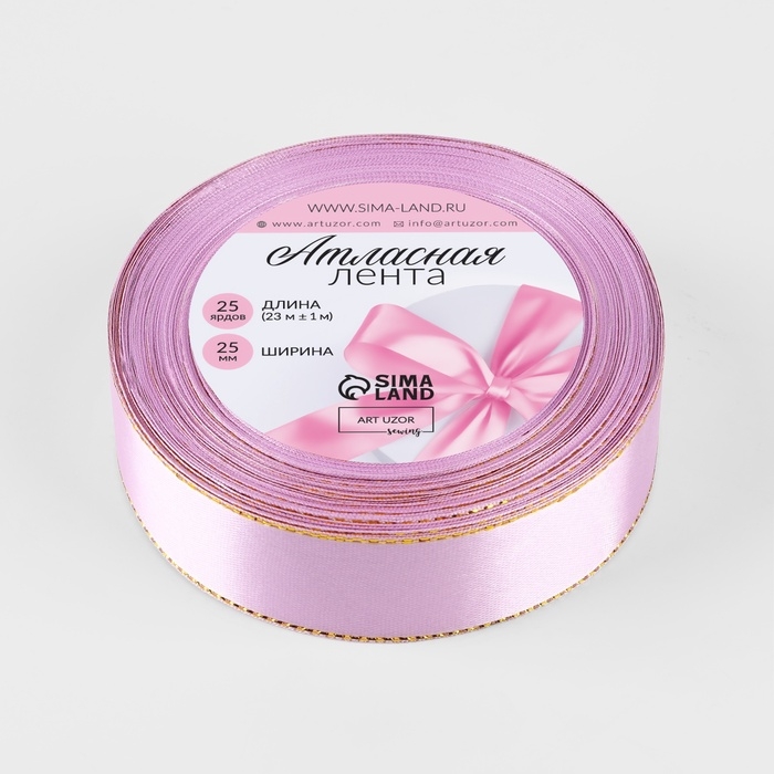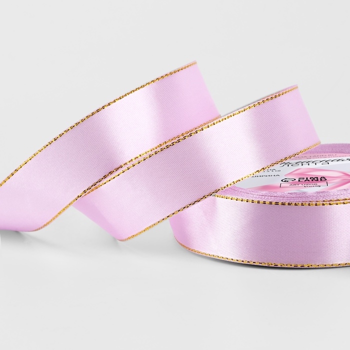 Лента атласная «Золотые нити», 25 мм × 23 ± 1 м, цвет розовый №04