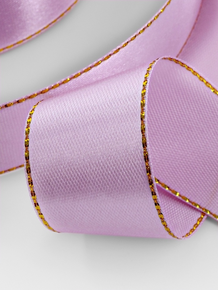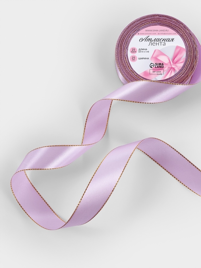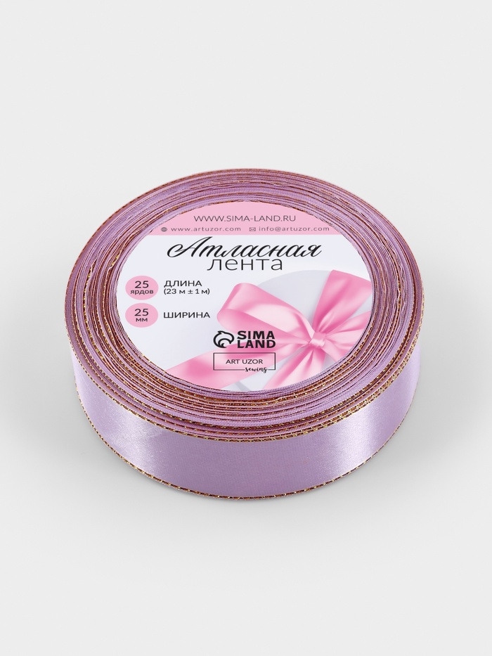 Лента атласная, с золотым люрексом, 25 мм, 23±1 м, сиреневая №044