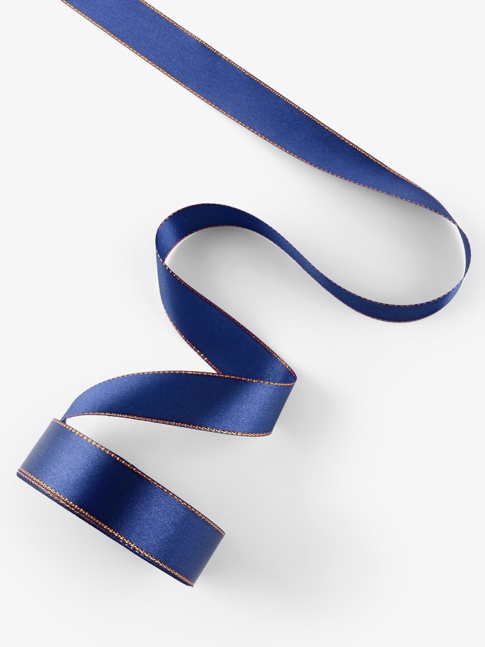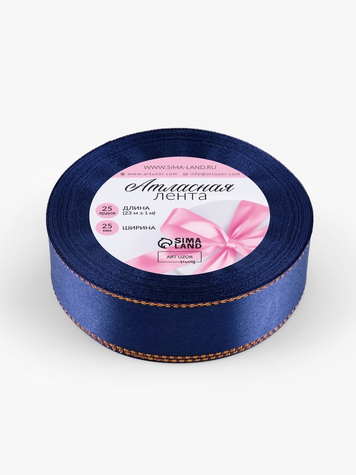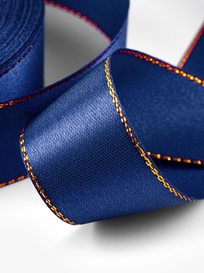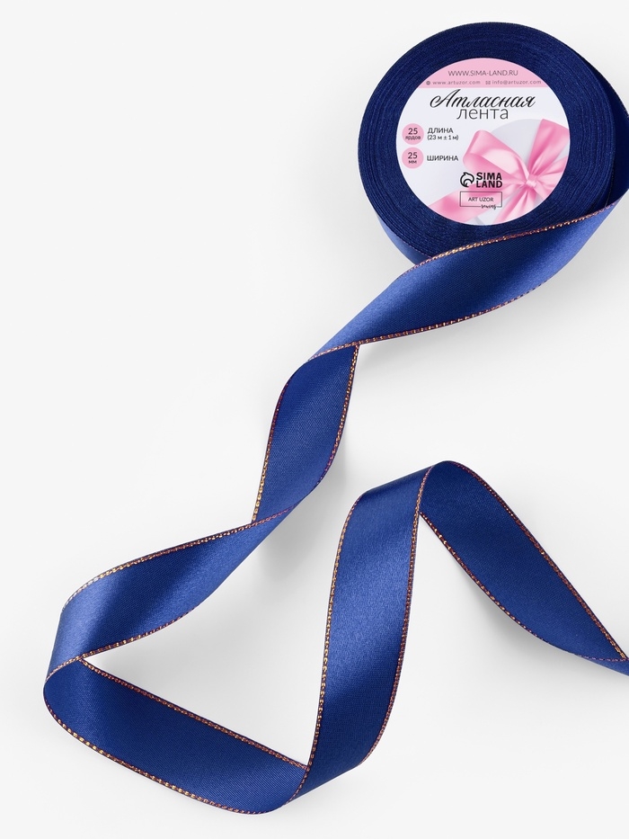 Лента атласная, с золотым люрексом, 25 мм, 23±1 м, синяя №038