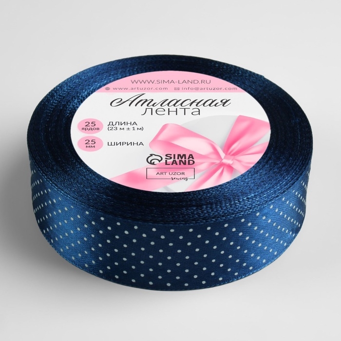 Лента атласная «Горошек», 25 мм × 23 ± 1 м, цвет синий №138