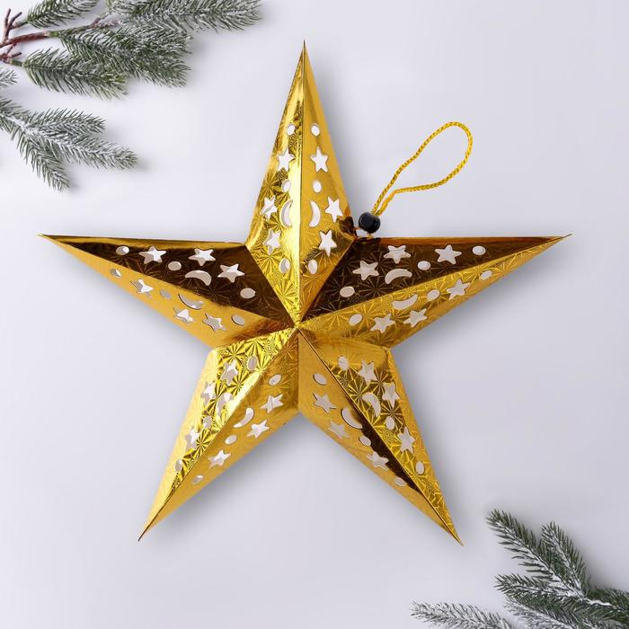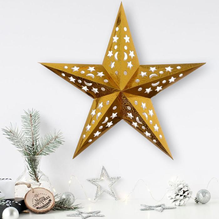 Звезда интерьерная с гирляндой «Золотые искры», 45 × 45 см