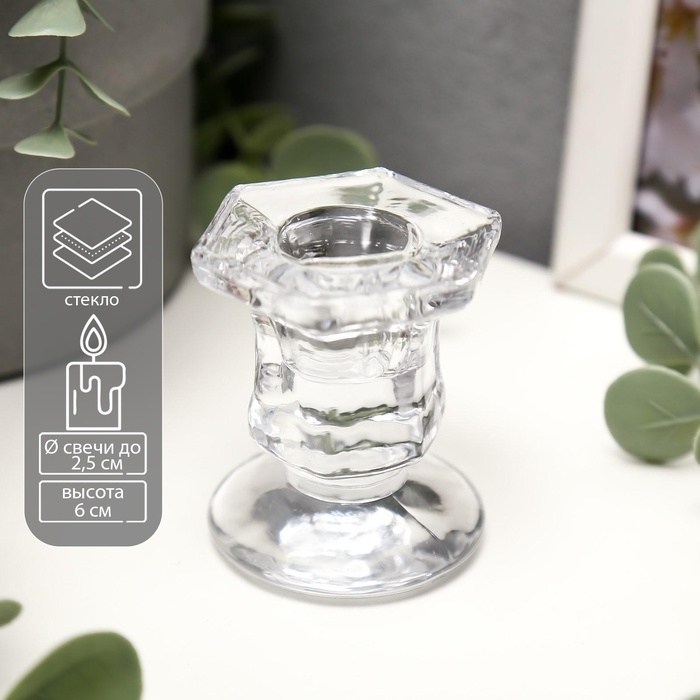Подсвечник стекло на 1 свечу "Юнона", прозрачный 6х5х4,5 см