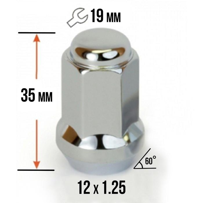 Гайка колесная под ключ 19 мм, 12×1.25 мм, конус, закрытая, хром, набор 20 шт