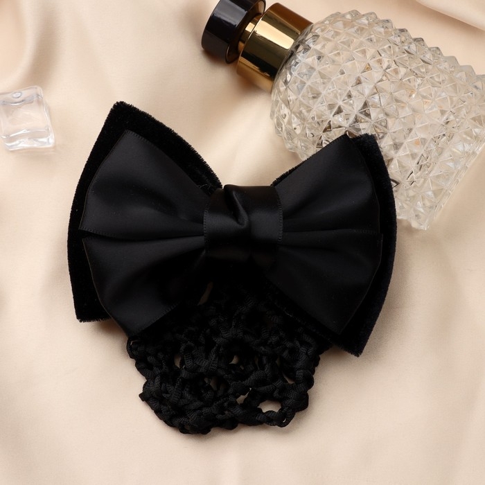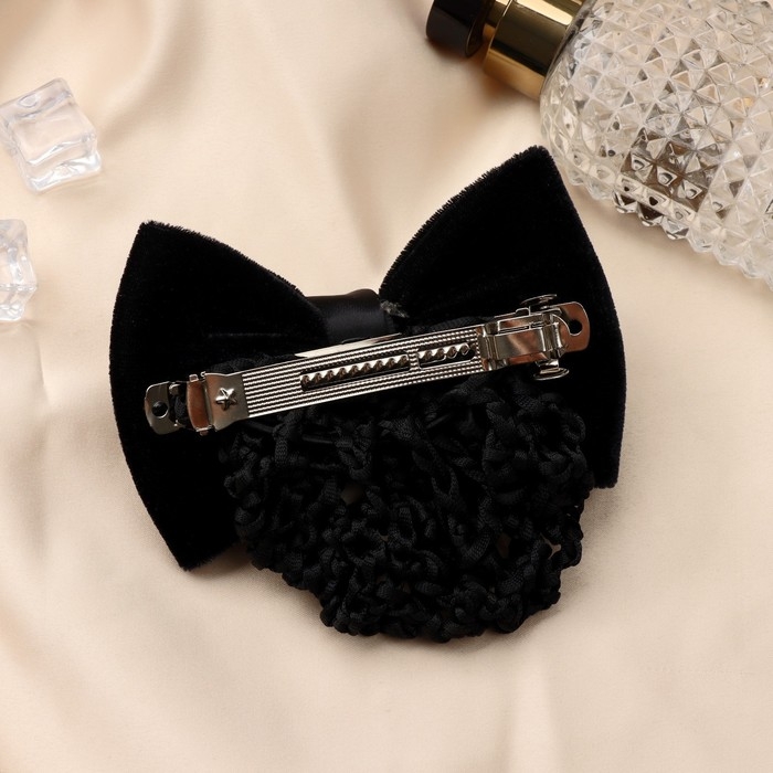 Заколка-автомат для волос "Бантик" с сеточкой для пучка, d-10 см, чёрный
