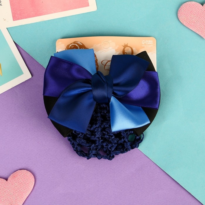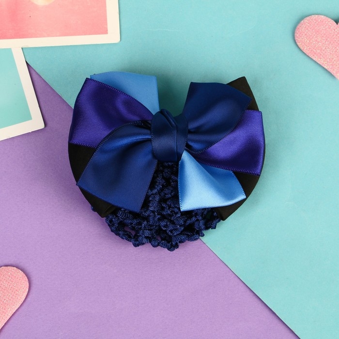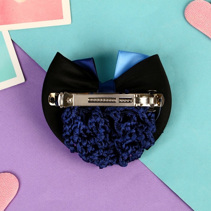 Заколка-автомат для волос "Бантик" с сеточкой для пучка, d-10 см, синий