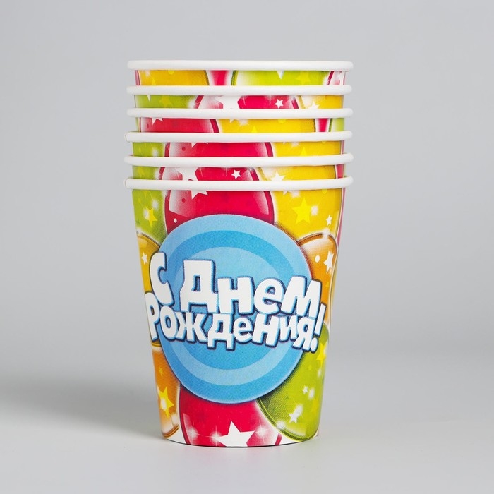 Стакан одноразовый бумажный "С Днем рождения" шары, 250 мл. (набор 6 шт)