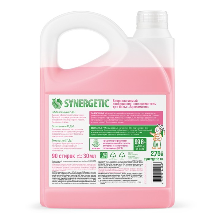 Кондиционер-ополаскиватель для белья Synergetic "Аромамагия",гипоаллергенный,биоразлагаемый,2.75 л