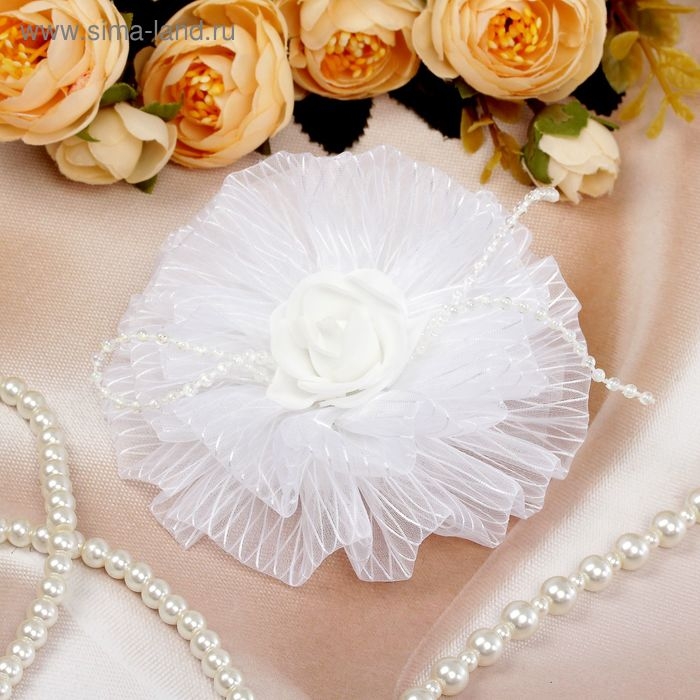 Резинка для волос бант "Школьница" полосатик, d-9 см, белый