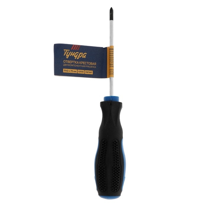Отвертка крестовая ТУНДРА, сатин, магнит, двухкомпонентная рукоятка, PH0 х 75 мм