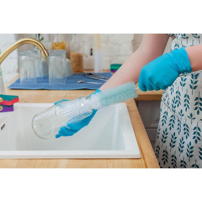 - Кухонный ёрш подходит для мытья посуды, детских бутылочек, сосок, банок, колб кальянов, ваз, кувшинов, чайников, бутылок, термосов, стаканов, графинов и прочей глубокой посуды с узким горлышком.