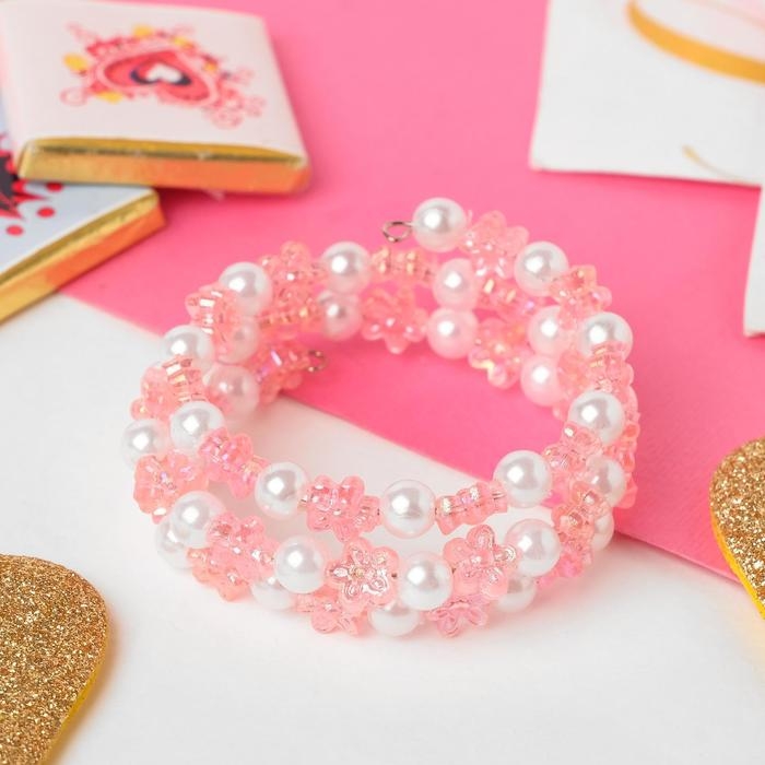 Браслет-пружинка детский «Выбражулька» цветочки хрустальные, цвет бело-розовый