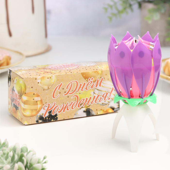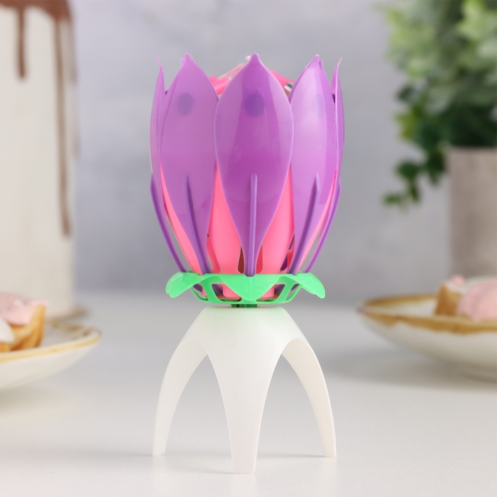 Свеча для торта музыкальная "Тюльпан", фиолетовая, 12×5 см