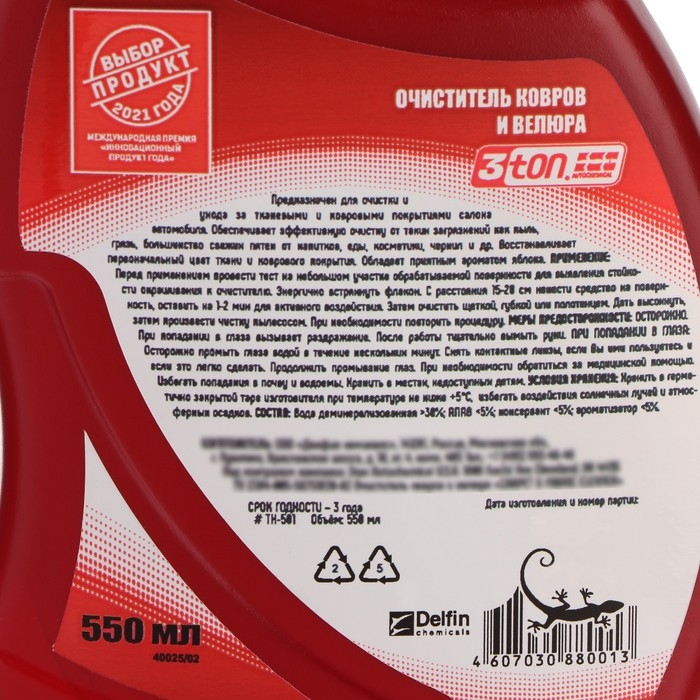 Очиститель ковров и велюра 3ton, 550 мл ТН-501