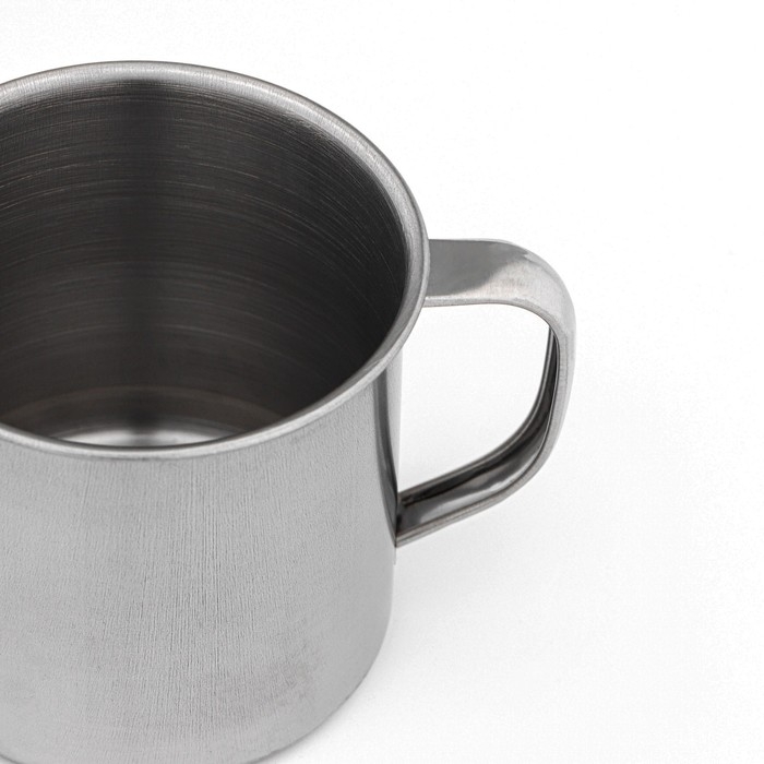 Универсальная металлическая кружка для туристов и активного отдыха. Кружка объёмом 250 мл из нержавеющей стали сочетает прочность и простоту ухода. Её размеры (высота 6,5 см, диаметр 8 см) обеспечивают удобство при транспортировке и использовании вне дома.