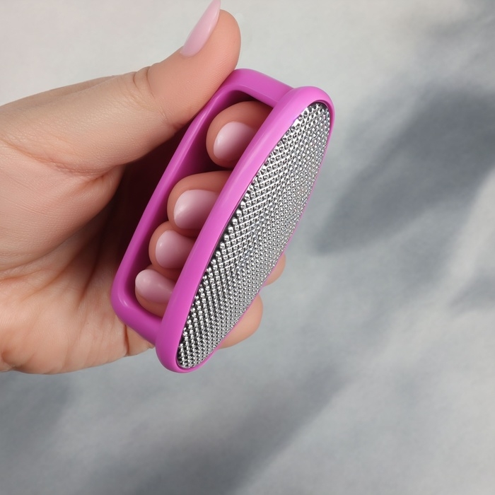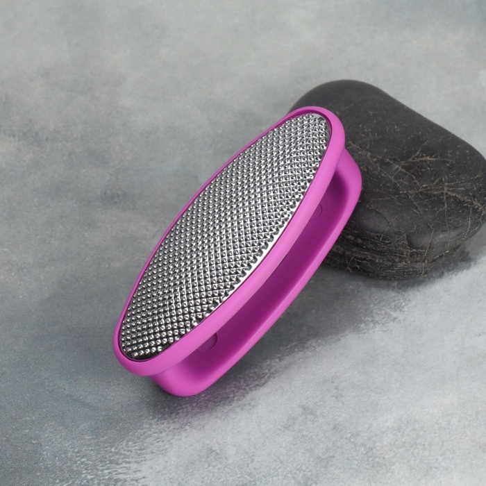 Кожа на ногах не такая нежная, как кожа рук, и требует особого внимания и ухода. Воспользуйтесь тёркой для ног. Двухсторонняя тёрка-наждак – это универсальный помощник в процессе ухода за ногами. За счёт интересного дизайна товаром могут пользоваться не только женщины, но и мужчины. Она бережно очистит огрубевшую кожу от мозолей и натоптышей, и ваши пяточки примут здоровый и ухоженный вид. С одной стороны находится тёрка, которая поможет удалить огрубевшую кожу, а с другой – наждак, который придаст пяткам мягкость и обработает сухие мозоли. Удобную эксплуатацию педикюрного инструмента обеспечит длинная ручка.
