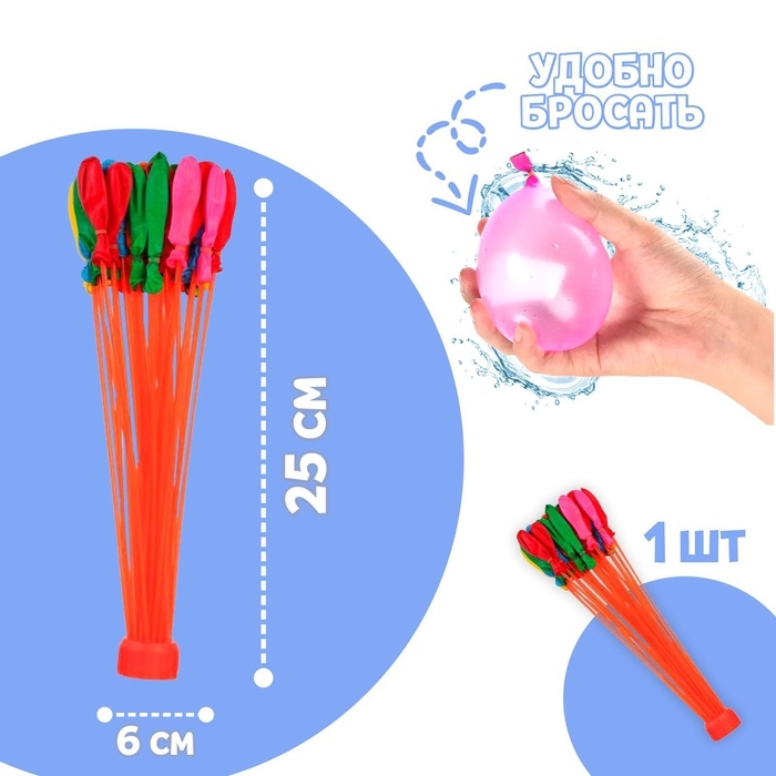 Водные бомбы «Шар», 1 насадка, 37 шаров, МИКС