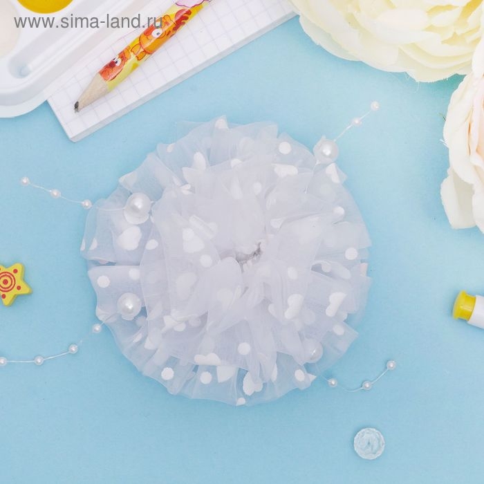 Резинка для волос бант "Школьница" снежная жемчужинка, d-8,5 см, белый