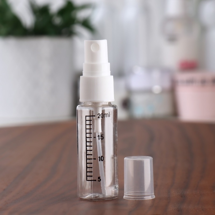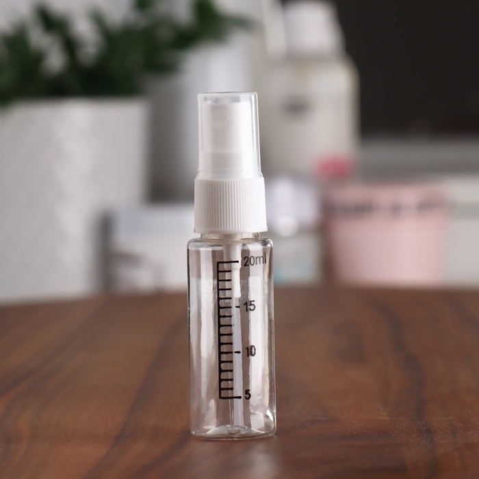 Бутылочка для хранения, с распылителем, со шкалой деления, 20 мл, цвет белый/прозрачный