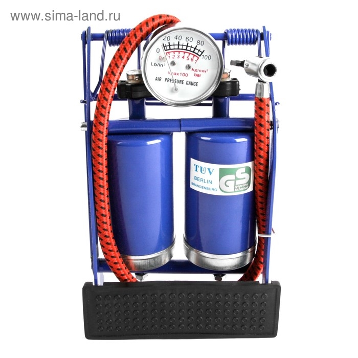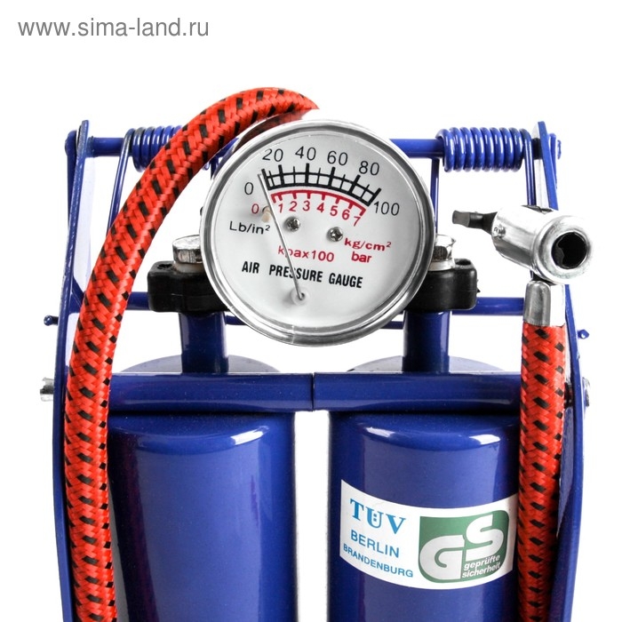 Насос ножной Cartage с манометром, 2 цилиндра, усиленный