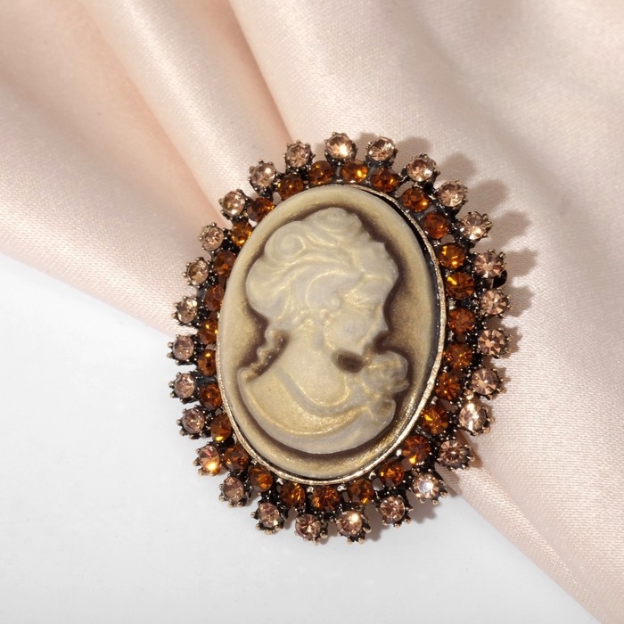 Брошь «Камея» в стразах, цвет коричневый в чернёном золоте
