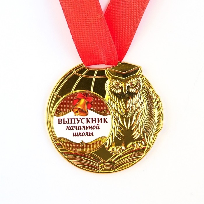 Медаль школьная на Выпускной «Выпускник начальной школы», на ленте, золото, металл, d = 5 см