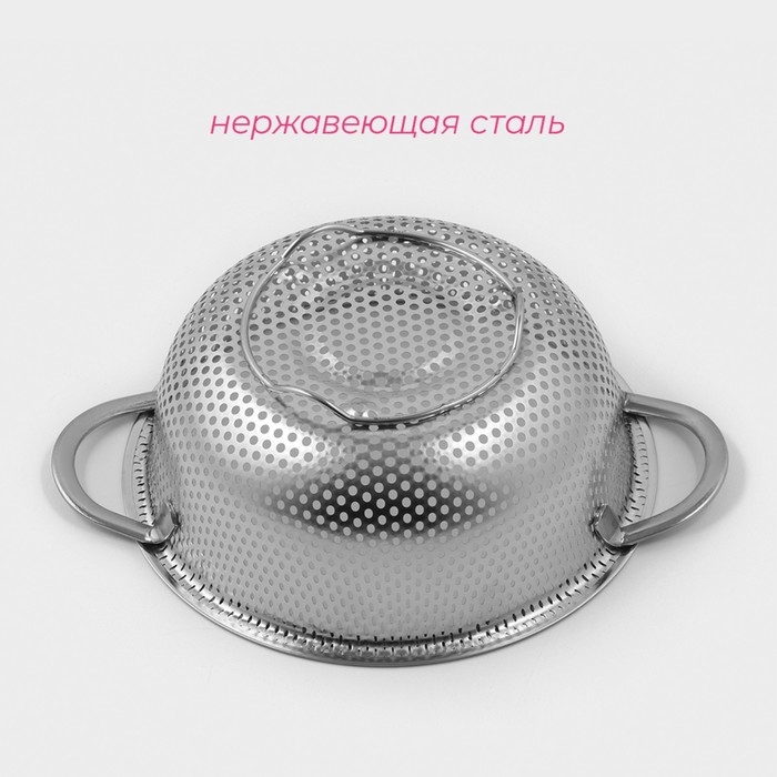 Дуршлаг из нержавеющей стали «Марко», d=16,5 см, две ручки, цвет хромированный