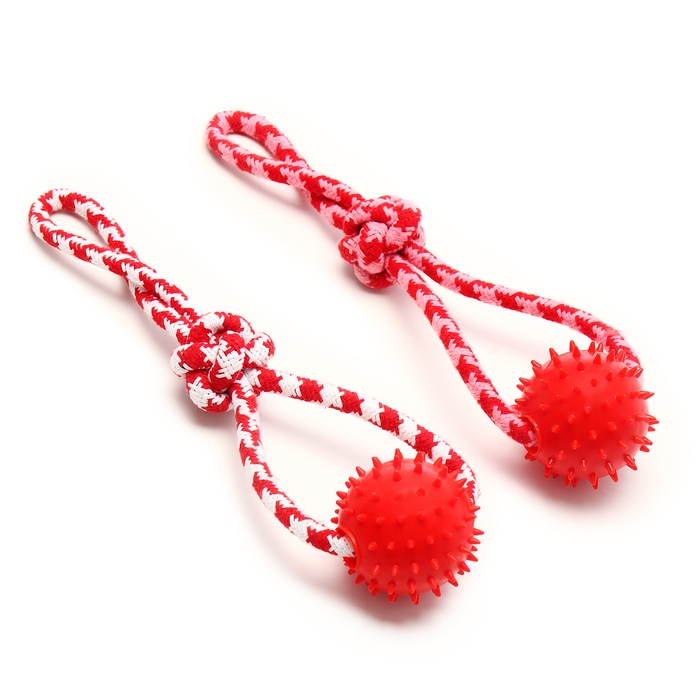 Игрушка канатная "Узел с массажным шариком", до 31 см, до 65 г, микс цветов