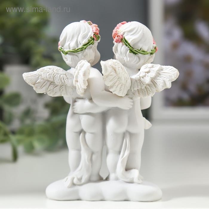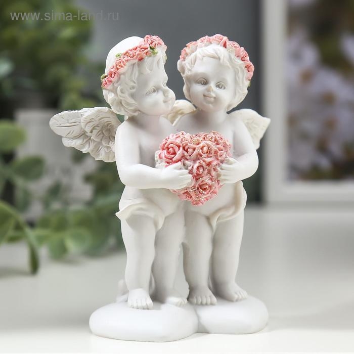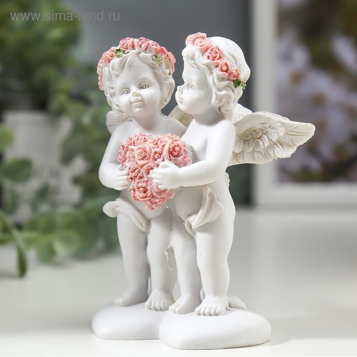 Сувенир полистоун "Ангелочки в розовых веночках с сердцем из роз" 10х8,5х5,5 см