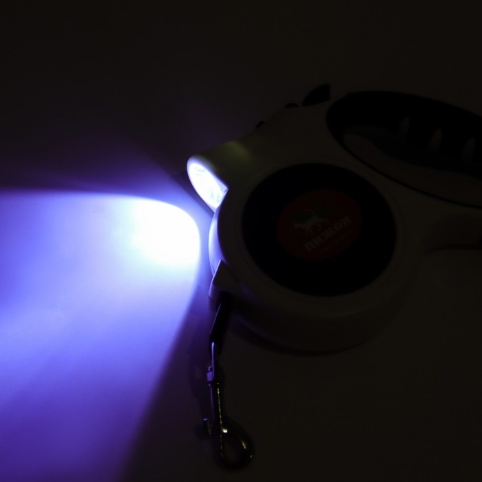 Ручка изготовлена из качественного материала, который имеет прорезиненное покрытие, которое обеспечивает надежный захват при прогулке. Кроме того, рулетка "Пижон" оснащена фонариком, который позволит вам выгуливать своего питомца даже в темное время суток. Фонарик имеет яркий свет и работает от батареек, которые уже входят в комплект.